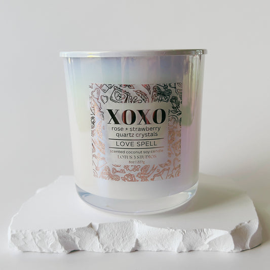 XOXO Rose + Strawberry Quartz Crystal Candle | Love Spell